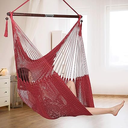 Amazon Com Bathonly Large Caribbean Hammock Hanging Chair Durable Polyester Hanging Chair Swing Chair W Foldable Spreader Bar For Indoor Outdoor Garden Living Room Red Garden Outdoor